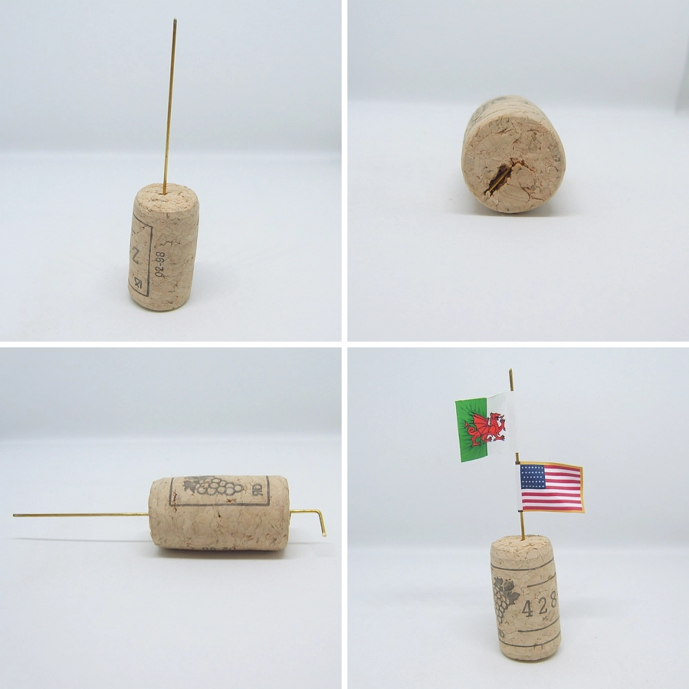 - It is better to work on the flag well away from the figure. I made a 2.5" "dummy" flag pole from 1 mm brass rod set into a wine cork. All folding, glueing and drying stages use this.