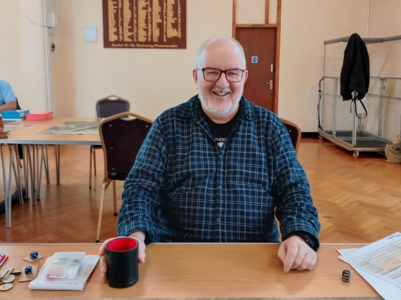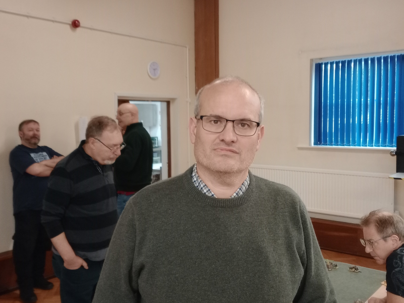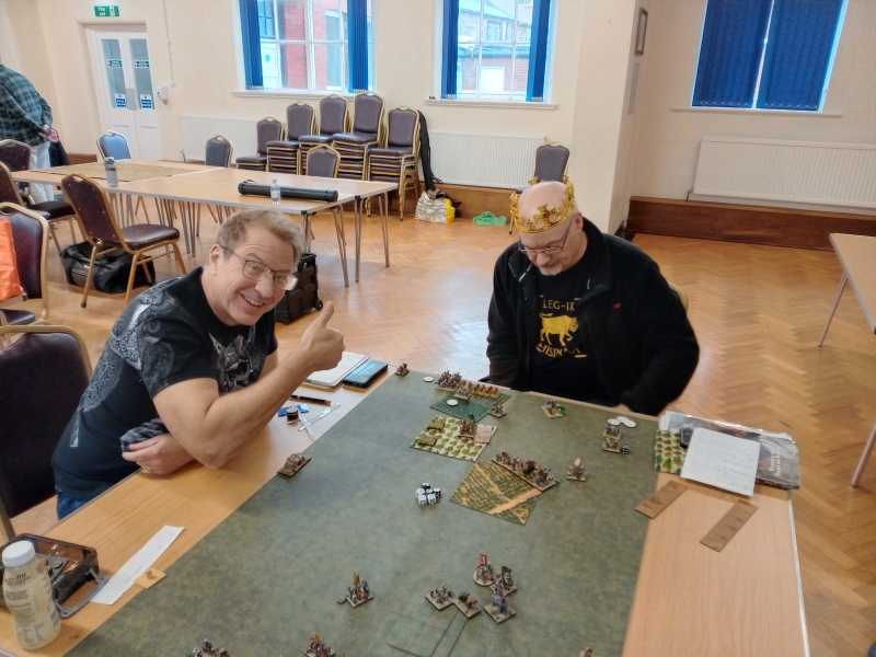 I don't know what happened with my camera here, but it sums up Kev's weekend. I suspect he wasn't on top form on Saturday. By Sunday he was clearly unwell and sat out the rest of the competition. In the game two very similar armies faced one another. Surprisingly, there was nothing special about the game as we both chipped away at one another. My army was some 25% larger and this told in the end. Nonetheless, always a pleasure playing Kev.